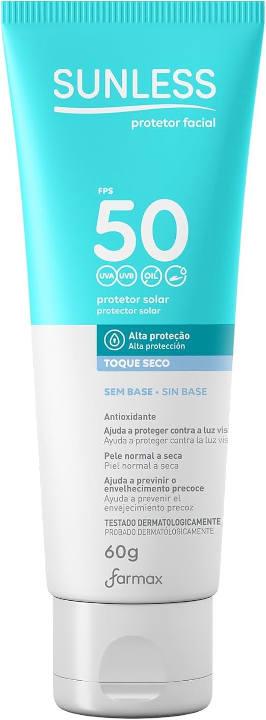 O Sunless Toque Seco é um protetor solar facial desenvolvido para todo tipo de pele, com textura agradável e toque seco, especialmente indicado para peles sensíveis. Possui alta proteção solar FPS 50 contra raios UVA e UVB, sendo resistente à água e ao suor.